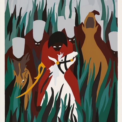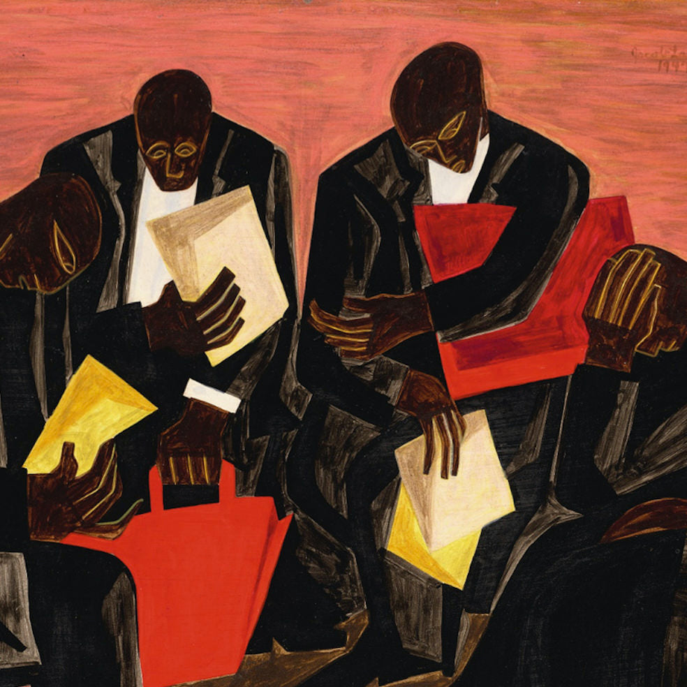 Jacob Lawrence was an acclaimed African American painter best known for his dynamic portrayals of Black life, history, and culture. Born in Atlantic City, New Jersey, and raised in Harlem, Lawrence developed a distinctive modernist style marked by vivid color, rhythmic composition, and powerful storytelling. His landmark Migration Series (1940–41), a collection of 60 panels, chronicles the Great Migration of African Americans from the rural South to the urban North. As one of the first Black artists represented by a major New York gallery, Lawrence broke barriers and inspired generations of artists with his visual narratives of resilience and dignity.